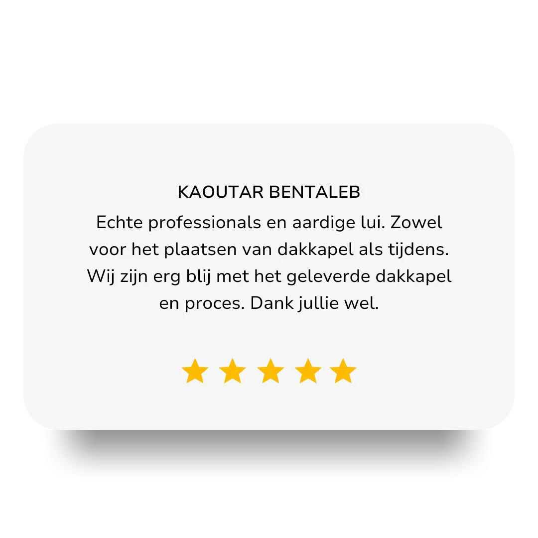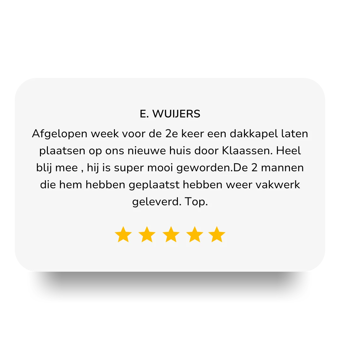 Al je wensen mogelijk, van afmeting tot materiaal. Ons gepassioneerde team staat het hele jaar voor je klaar om je te ondersteunen en je te adviseren naar jouw perfecte dakkapel. Maar ook na de plaatsing kun je rekenen op uitstekende aftersales voor optimale tevredenheid.